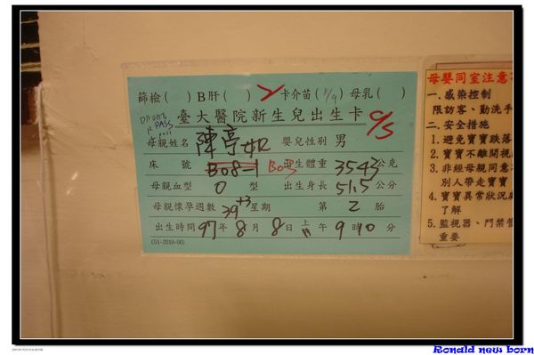 2008年8月8日早上9點10分,小Ronald報到~~~