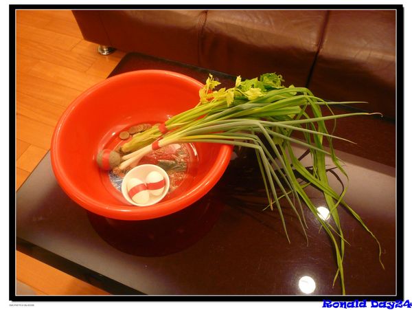 聰明→同時擺放蔥二根,取與『聰』同音,願寶寶聰明過人,智慧不凡。