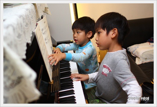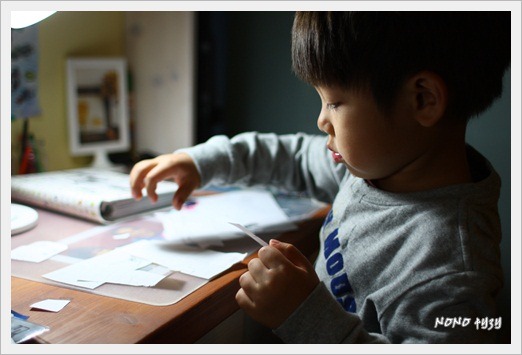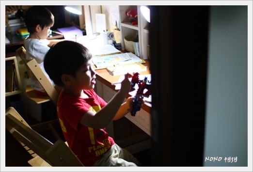 諾諾跟著哥哥上書桌,自己玩玩具, 畫圖玩剪貼~