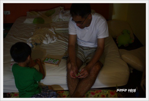 --牆上貼的是很愛的原住民歌手CD封面與兒子照片混搭.